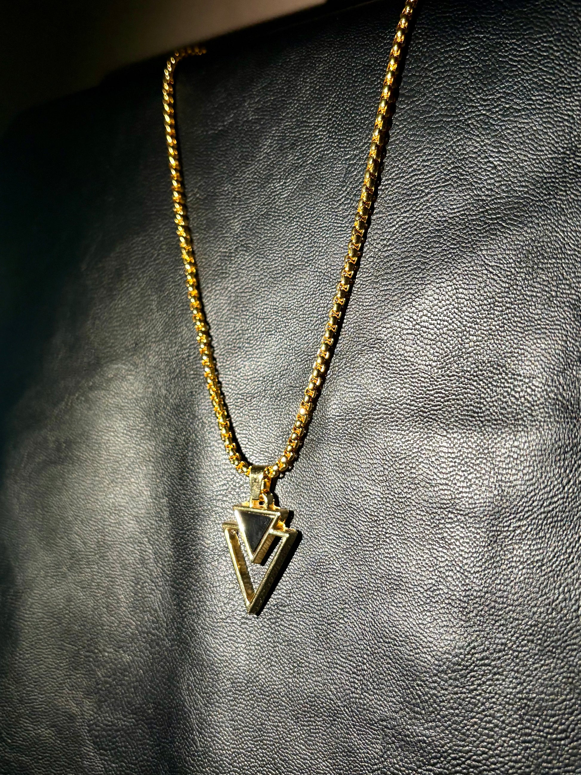 Unleash mystery and power with this 18K Gold Plated Cryptic Triangle Chain. Designed with sharp geometric precision, the triangle symbolizes strength, balance, and hidden wisdom. Crafted with a rich gold finish, this chain delivers a bold, modern edge that elevates any outfit.