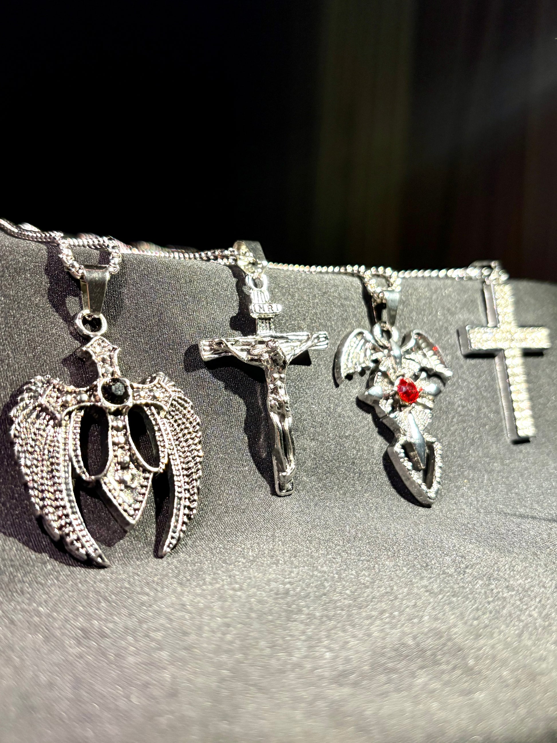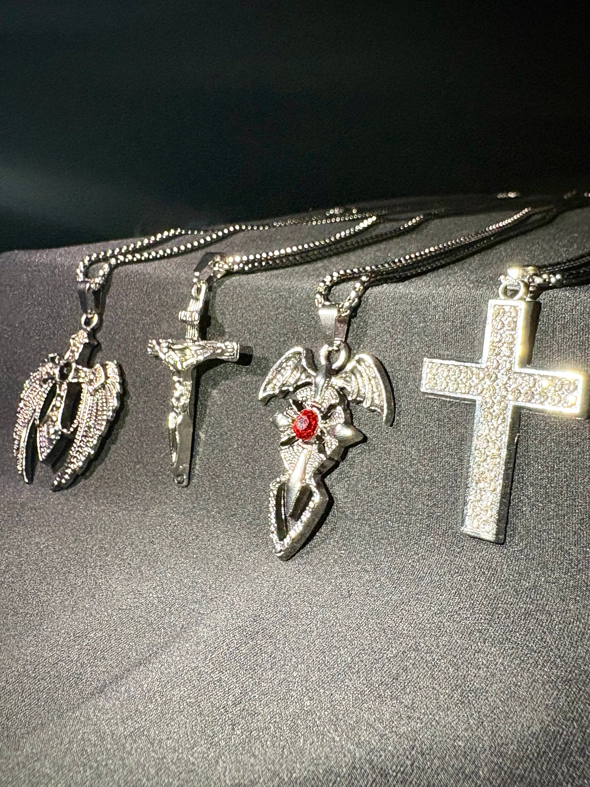 - Dark winged cross pendant chain