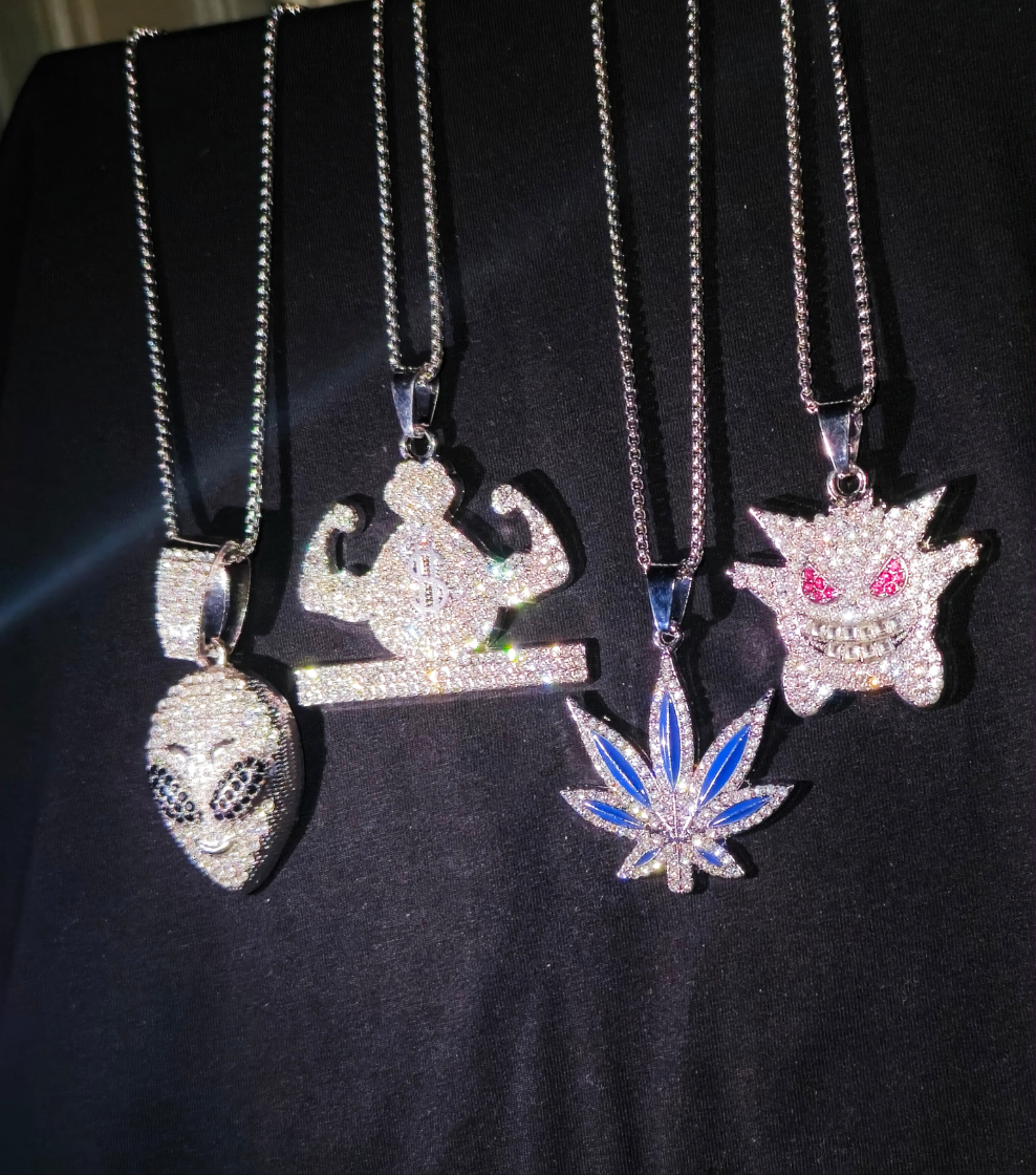 Iced out Alien + Monstrous + MrMoney Muscle + Cannabis leaf pendent (Set of 4) Limited Edition
